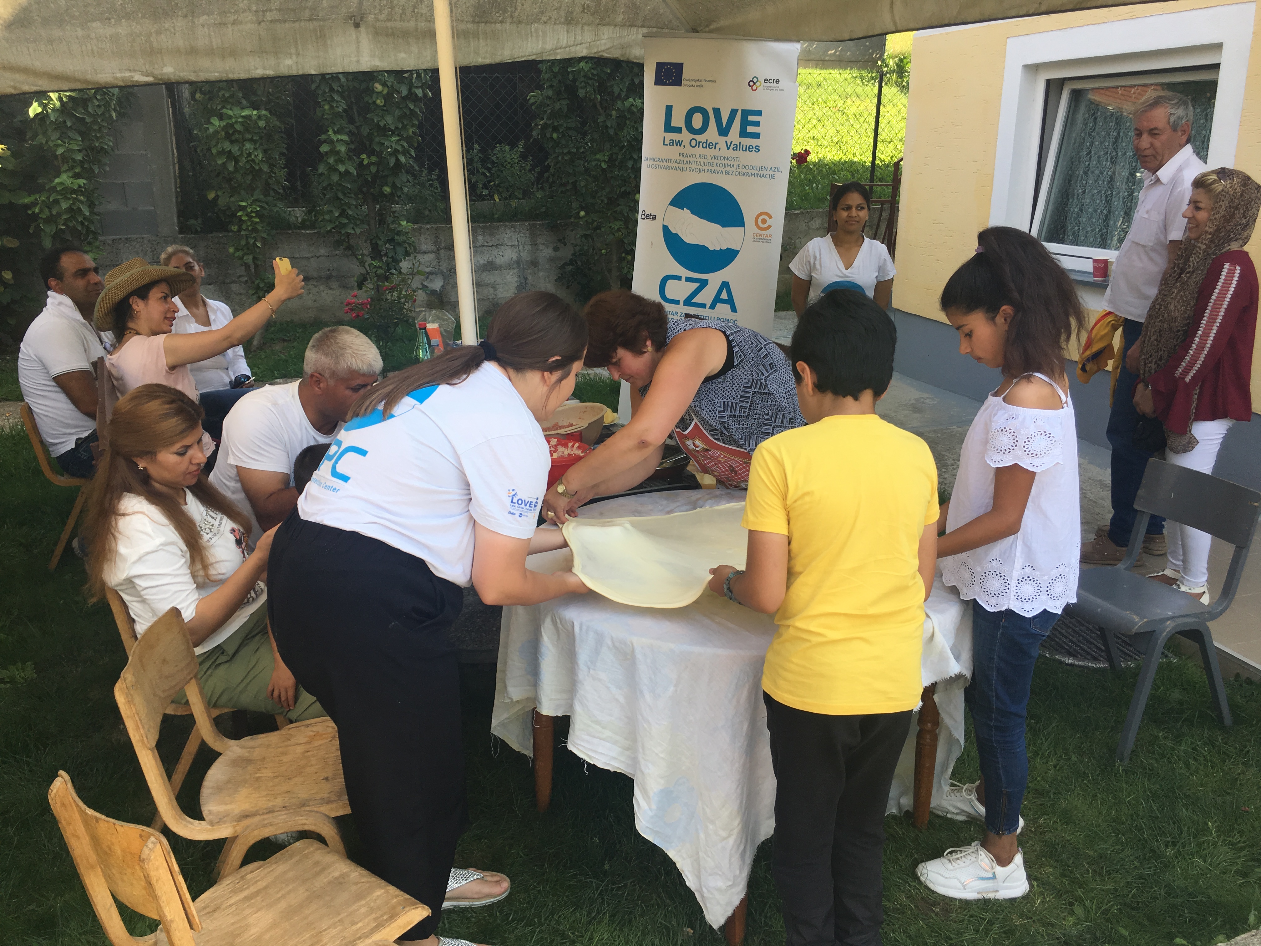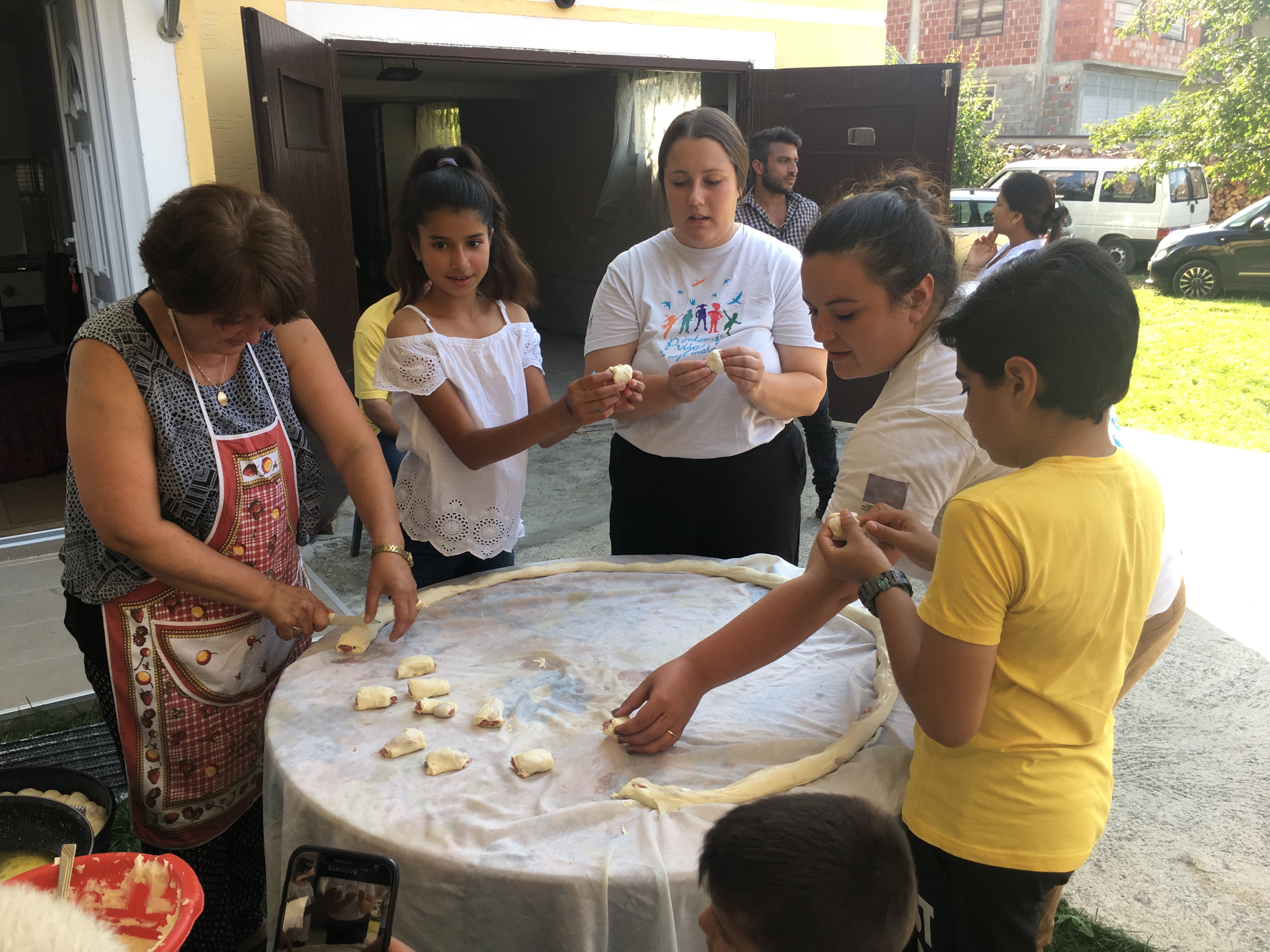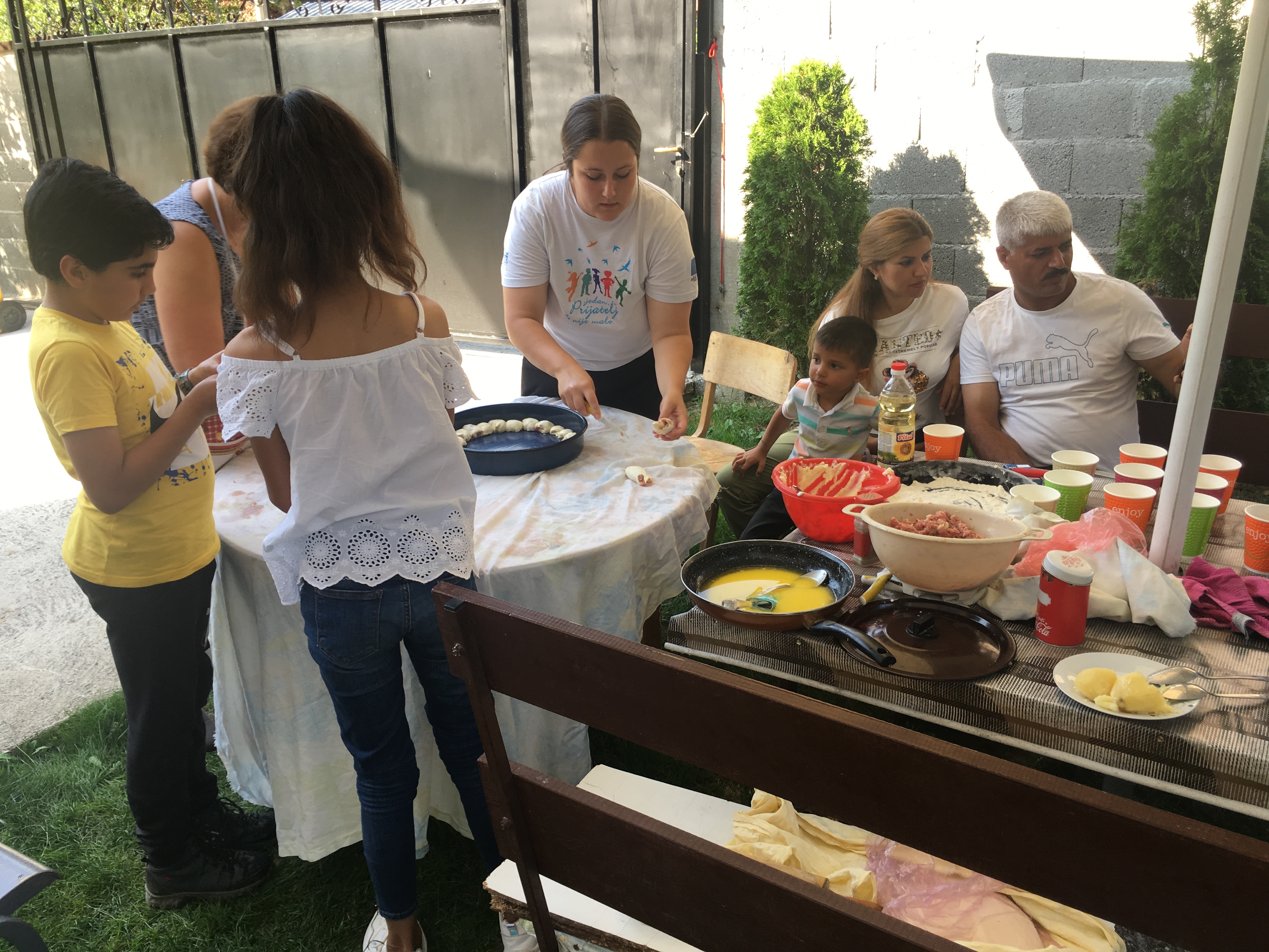 Tutin, 10. avgust 2019. – APC je juče u Tutinu realizovao integracijski dogadjaj uz saradnju sa Nazimom Halilovićem, pedagogom iz lokalne škole „Rifat Burdžević Tršo“ sa kojim dugo sarađujemo prilikom integracije dece izbeglica u školu. Uz pomoć Nazima, njegove porodice i prijatelja koji žive u Tutinu izbeglicama smo približili lokalnu kulturu praveći pite i mantije.