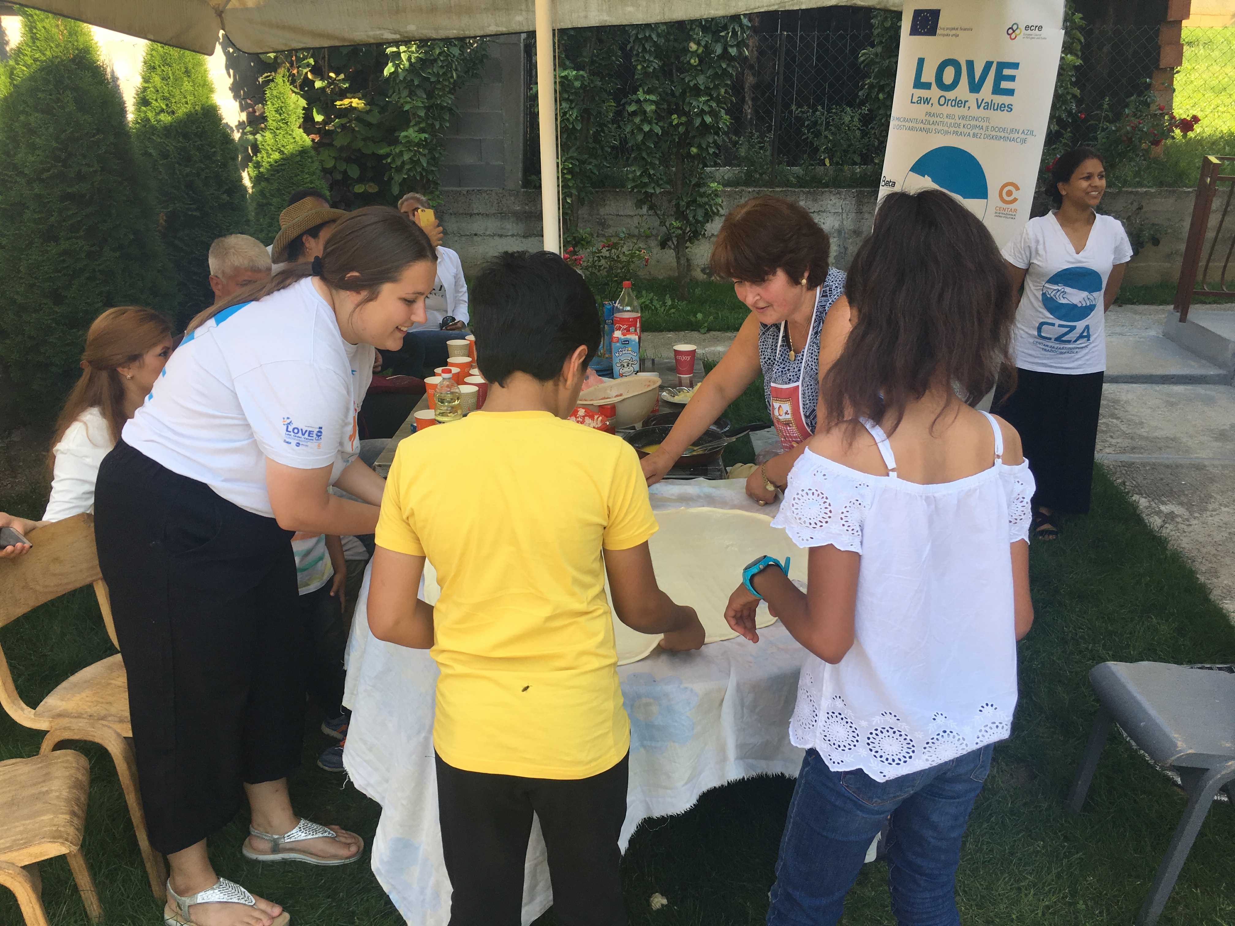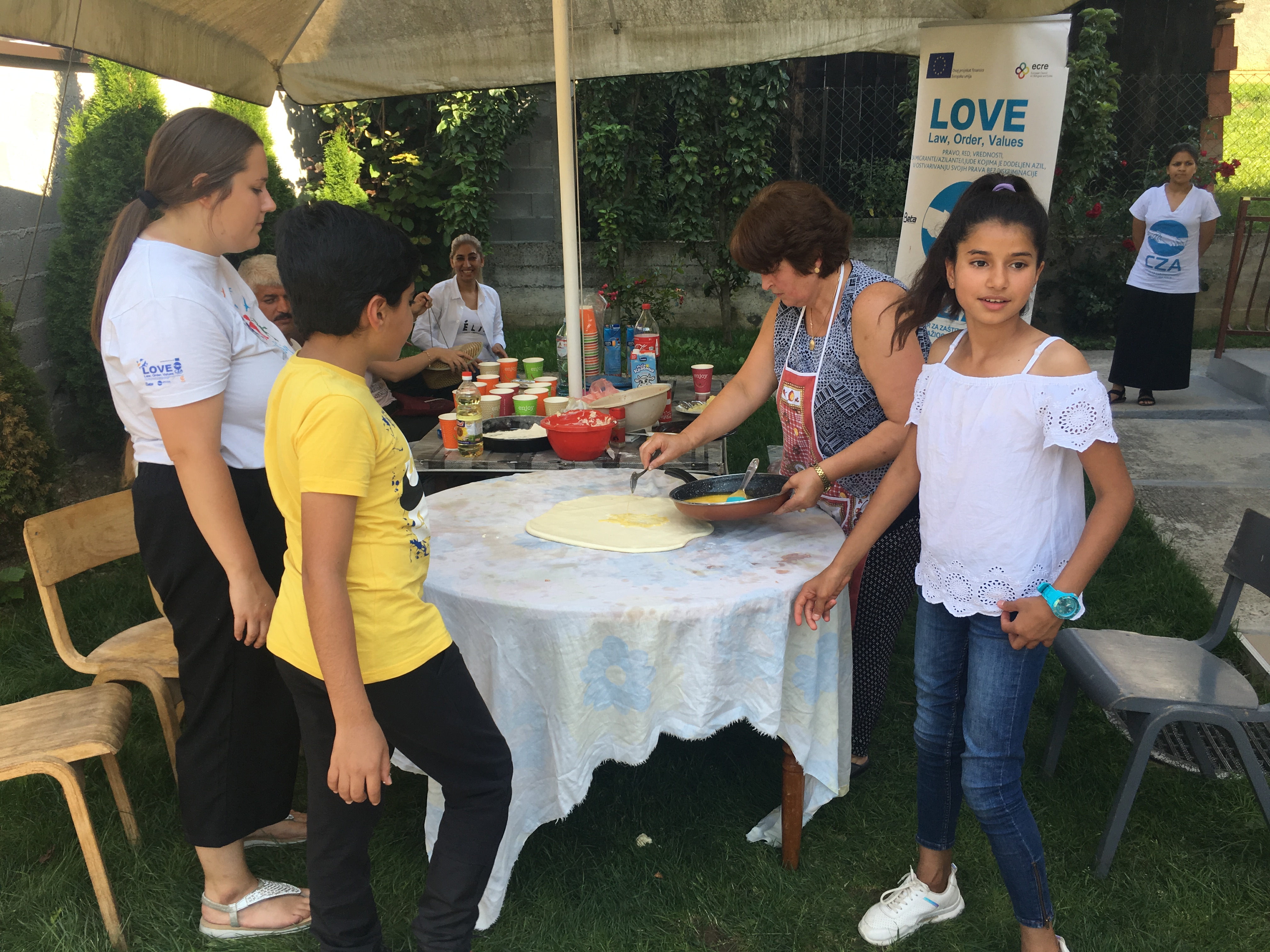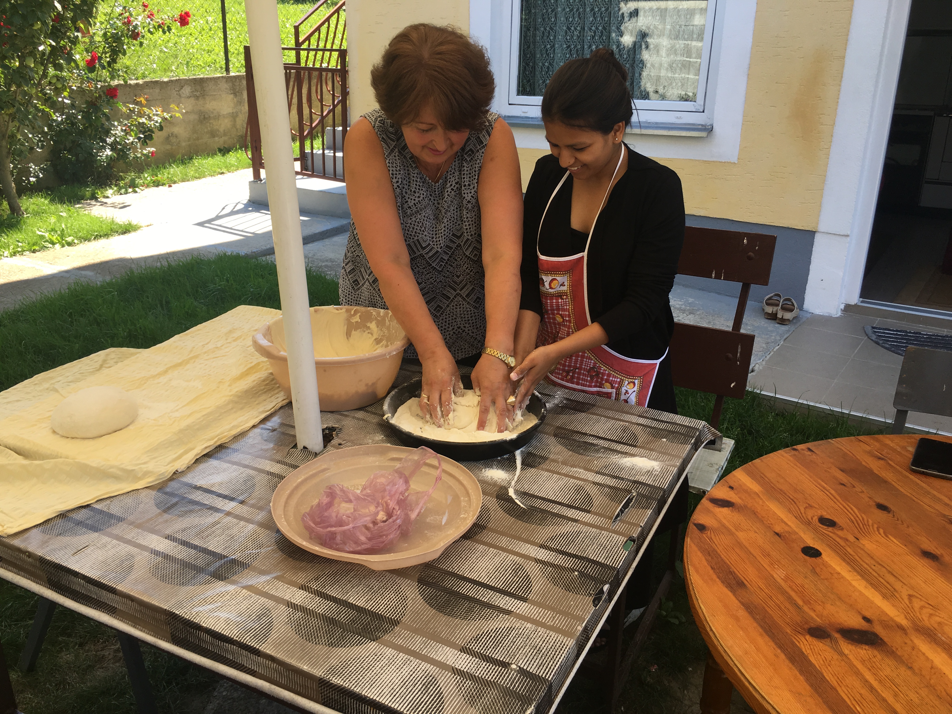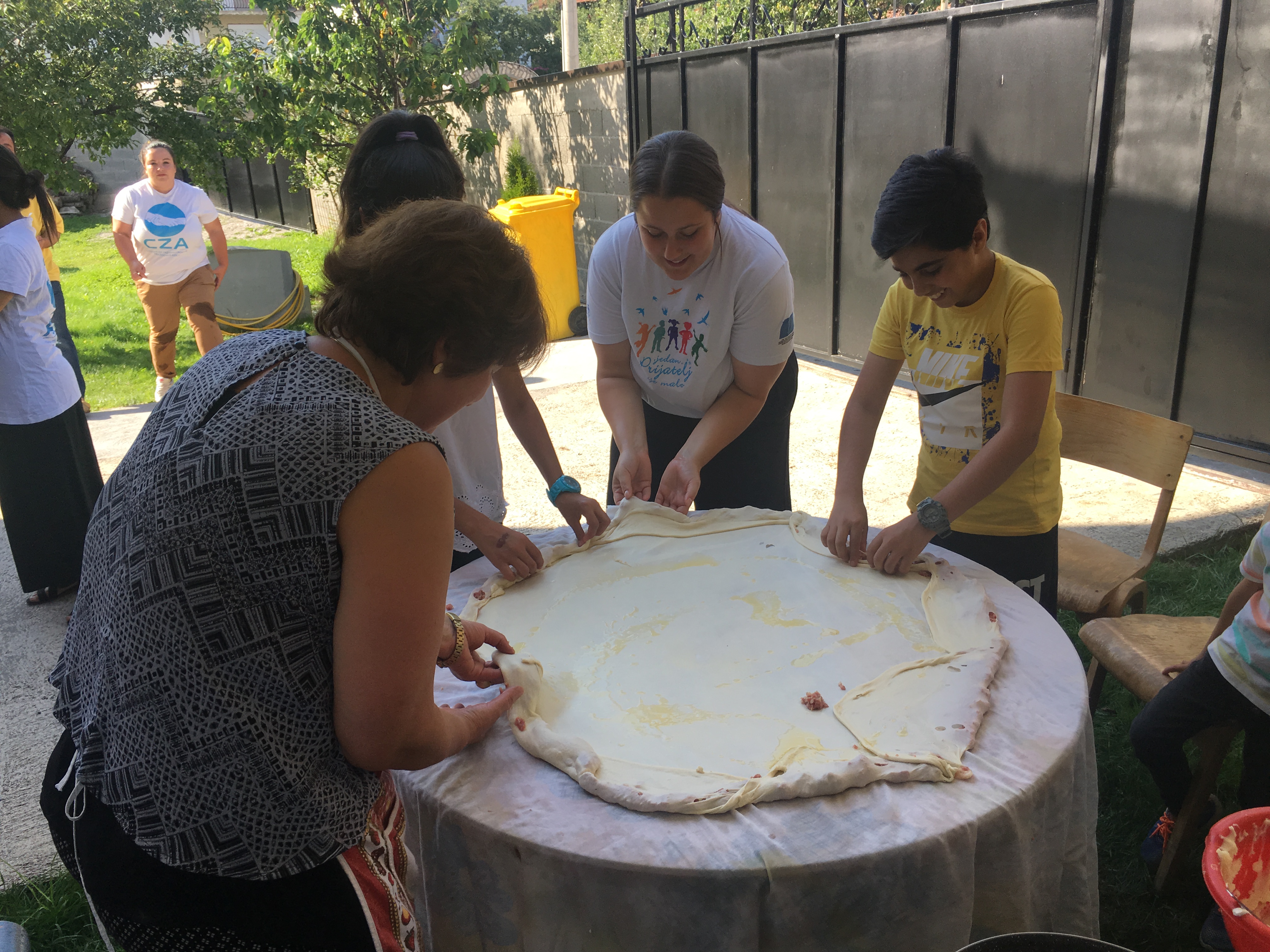 Tutin, 10. avgust 2019. – APC je juče u Tutinu realizovao integracijski dogadjaj uz saradnju sa Nazimom Halilovićem, pedagogom iz lokalne škole „Rifat Burdžević Tršo“ sa kojim dugo sarađujemo prilikom integracije dece izbeglica u školu. Uz pomoć Nazima, njegove porodice i prijatelja koji žive u Tutinu izbeglicama smo približili lokalnu kulturu praveći pite i mantije.
