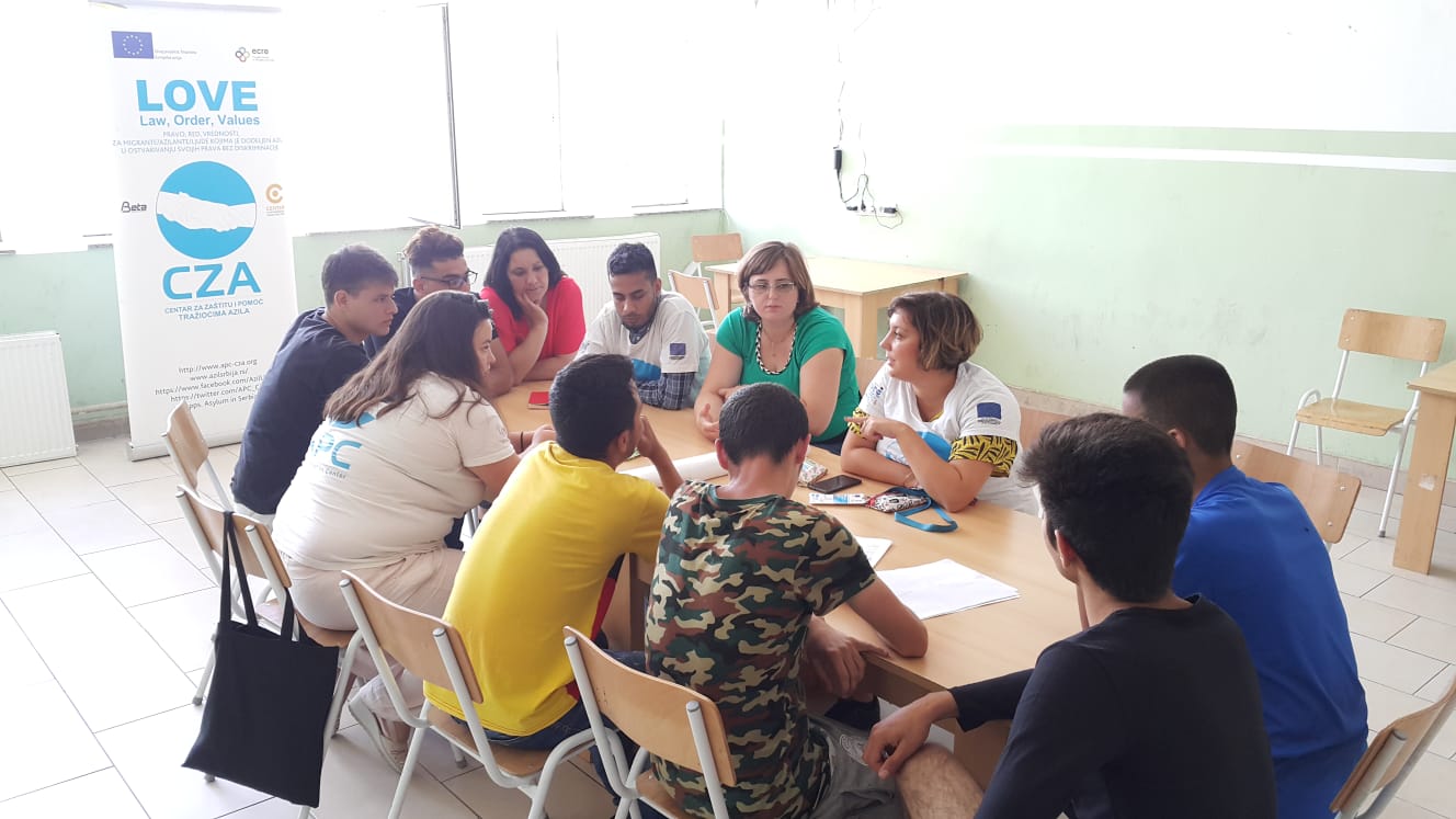 Sjenica, 24. jul 2019. – Tokom letnjeg raspusta tim Centra za zaštitu i pomoć tražiocima azila koji čine socijalna radnica, pedagog i prevodilac realizuje u Sjenici različite radionice koje imaju za temu školovanje u Srbiji.